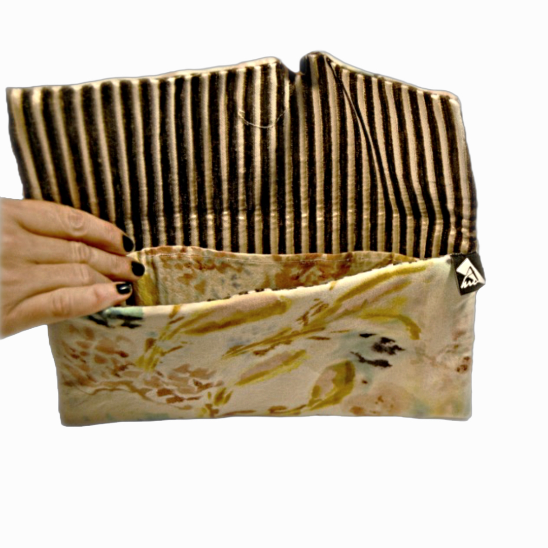 Bolso hecho con tedas recicladas y pintadas a mano.