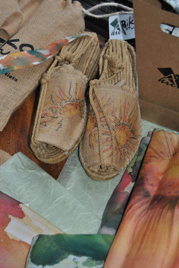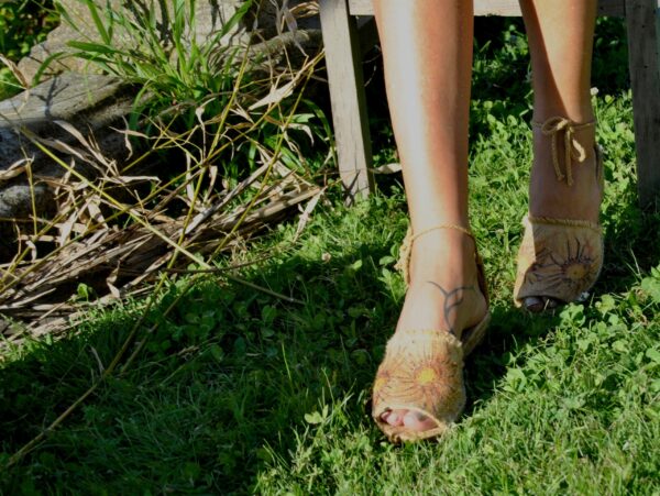 Alpargata sandalia, atada con cordón de algodón,Pintada a mano y realizada en yute