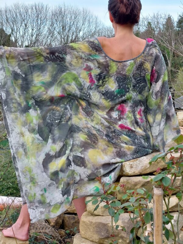 kaftan de gasa de seda natural 100%, pintado a mano.